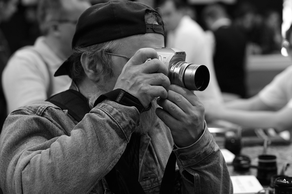 И всяких легендарных фотографов. Например эта сударыня, у которой пленочный Canon, снимает Игоря Сахарова.